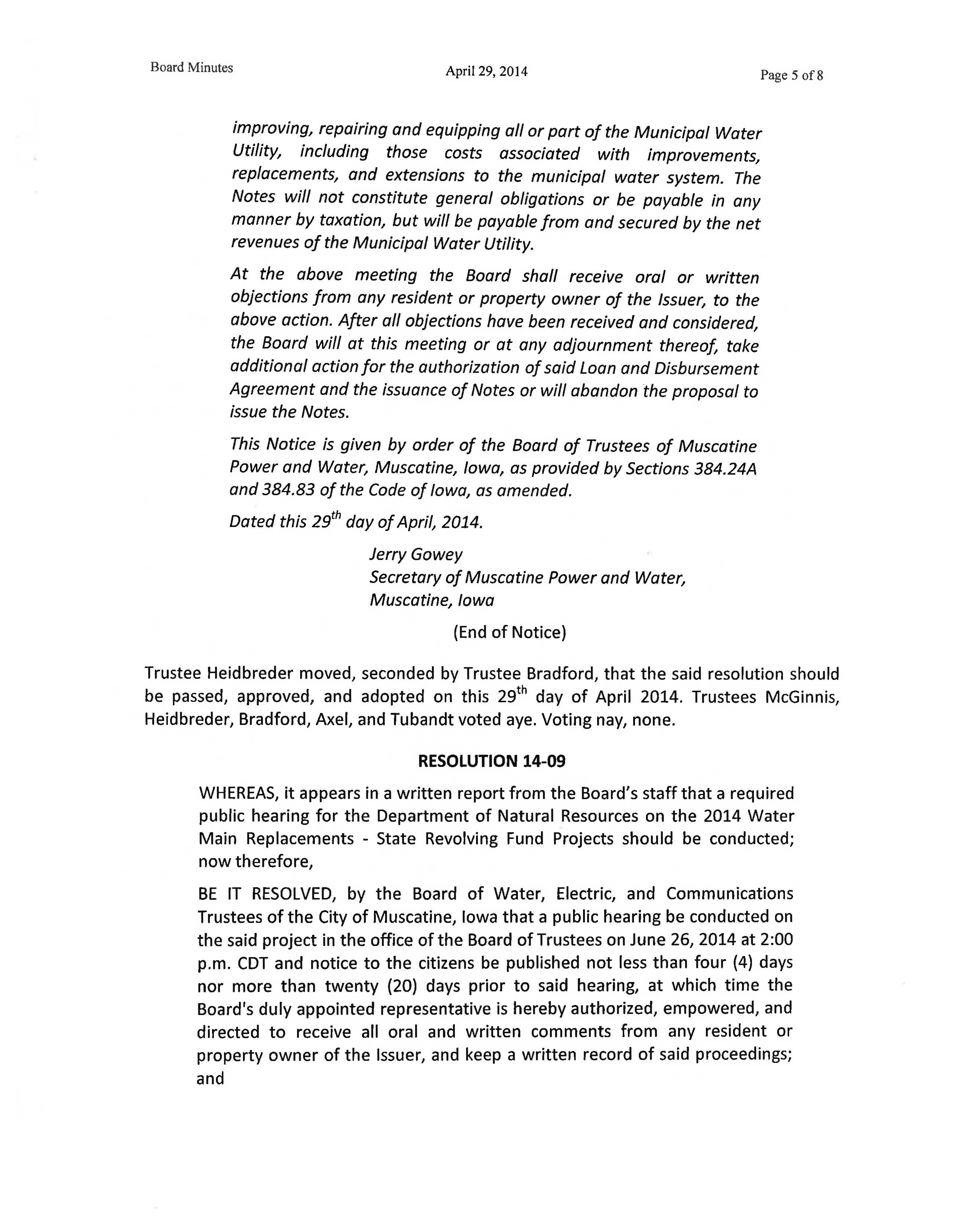 Gowey, Board Secretary;