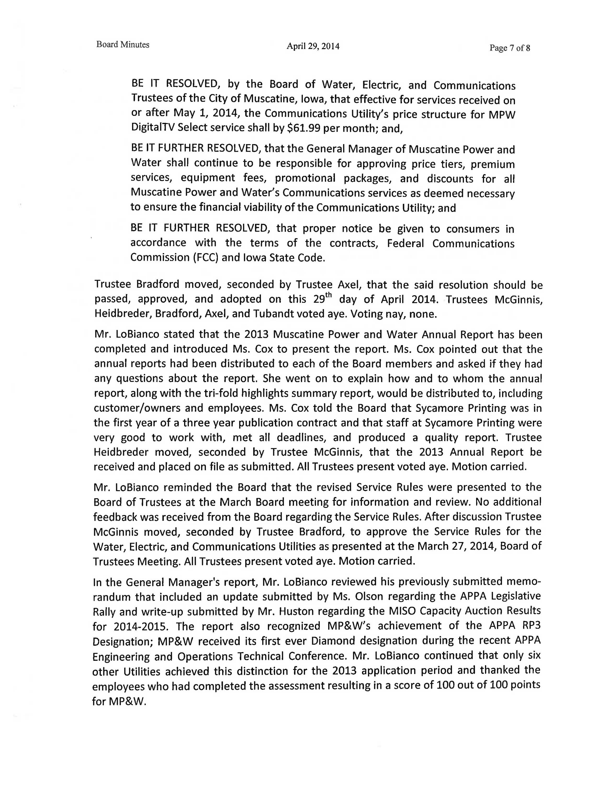 The Board of Trustees met in regular session at Muscatine Power and Water's
