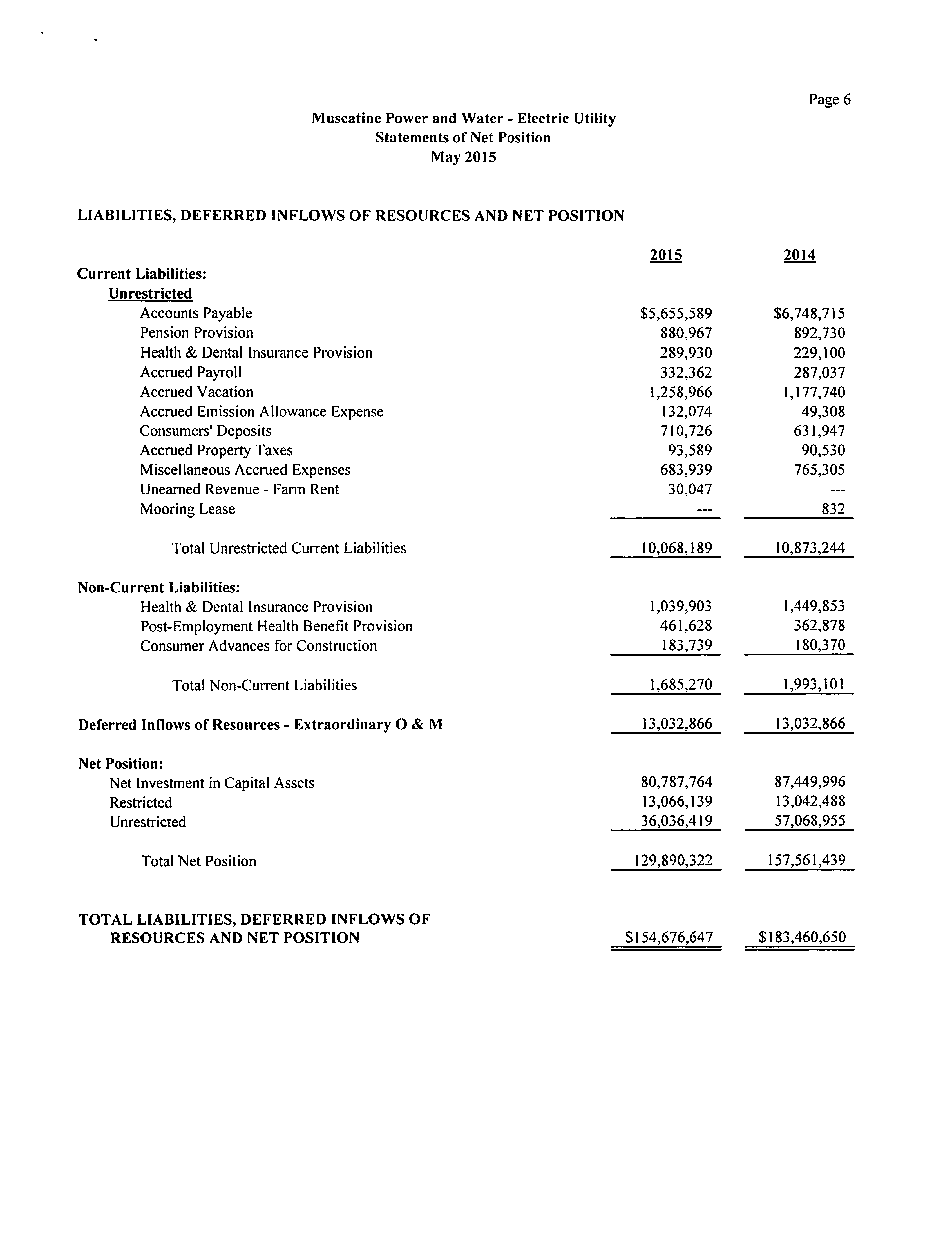 Statements ofNet Position