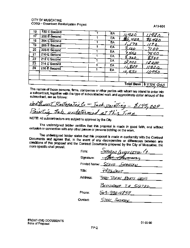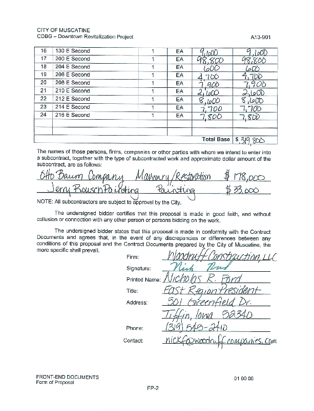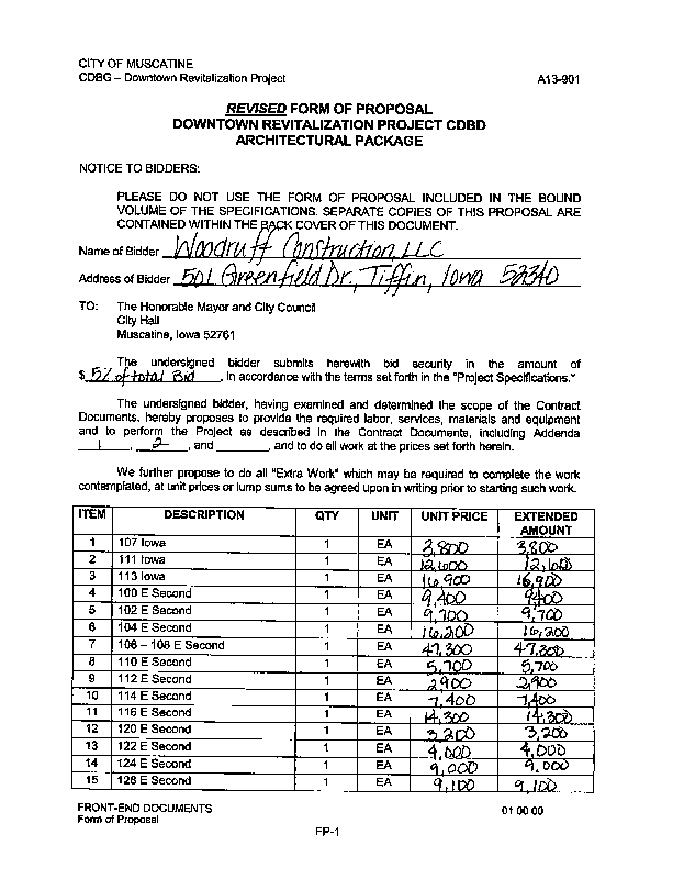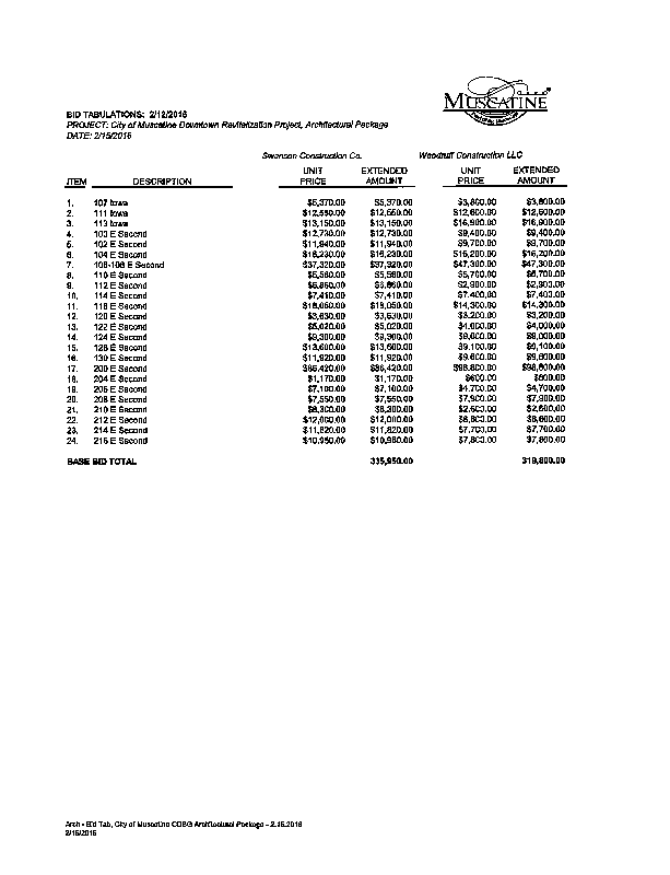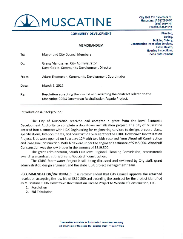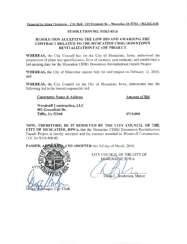 Version 1 Res. Adopted Accepting Low Bid and Awarding Contract for the CDBG Building Facade Project