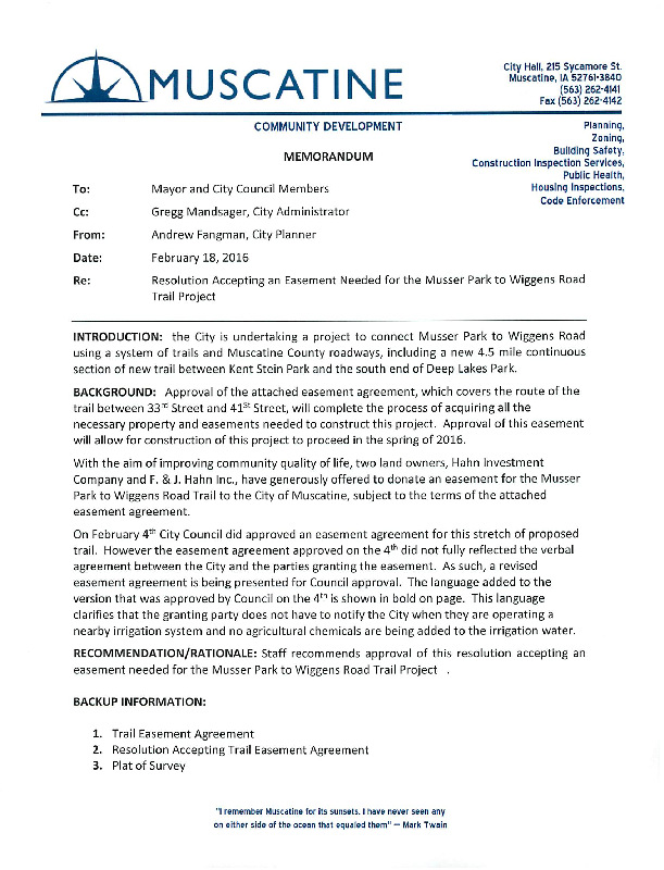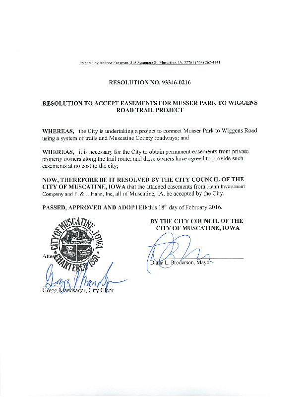 Version 1 Res. Adopted Accepting Easements for the Musser Park to Wiggens Road Trail Project