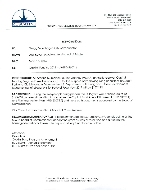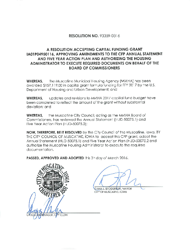 Version 1 Res. Adopted Accepting Capital Funding Grant Approving Amendments to the CFP Annual Statement and Five-Year Action Plan for MMHA