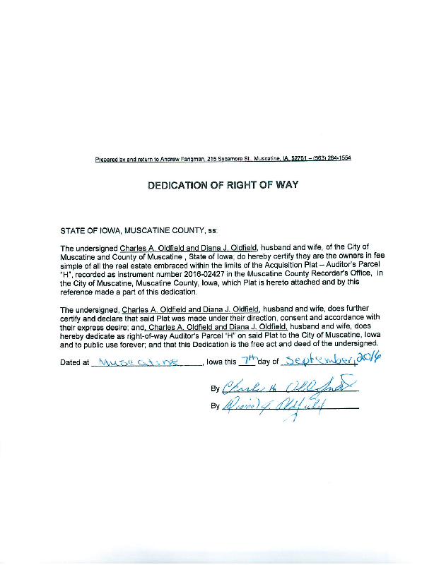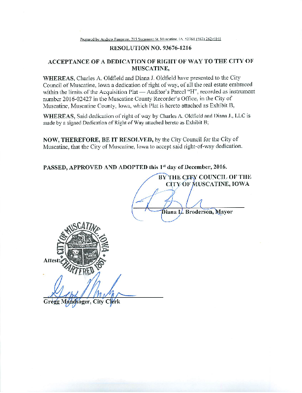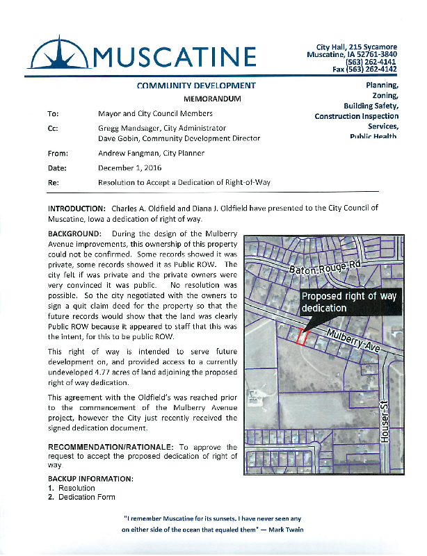 Version 1 Res. Adopted Accepting Dedication of Right-of-Way for the Mulberry Avenue Reconstruction Project