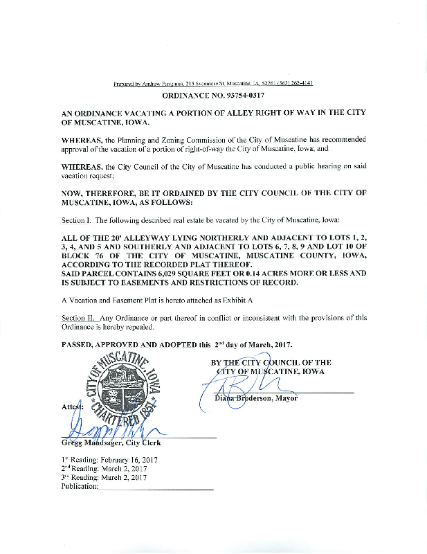 Version 1 Ord. Adopted Vacating Portion of Alley Right-of-Way (old Sun Mart alley)