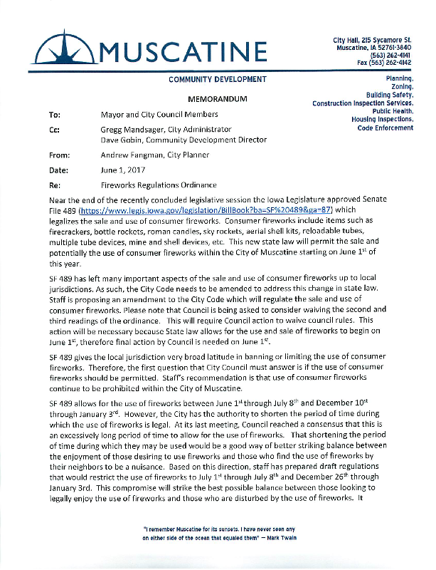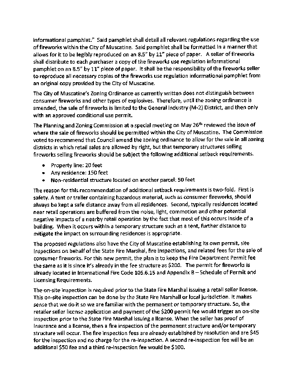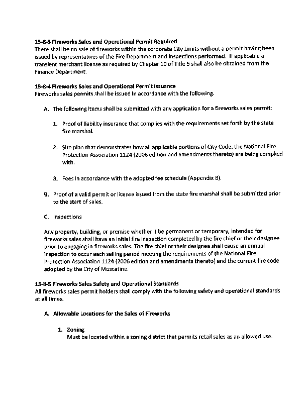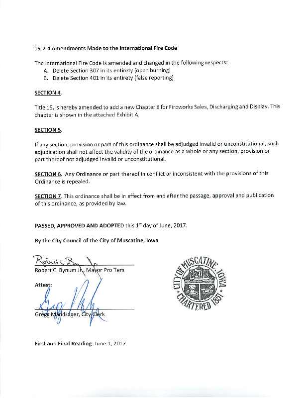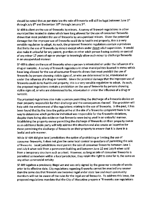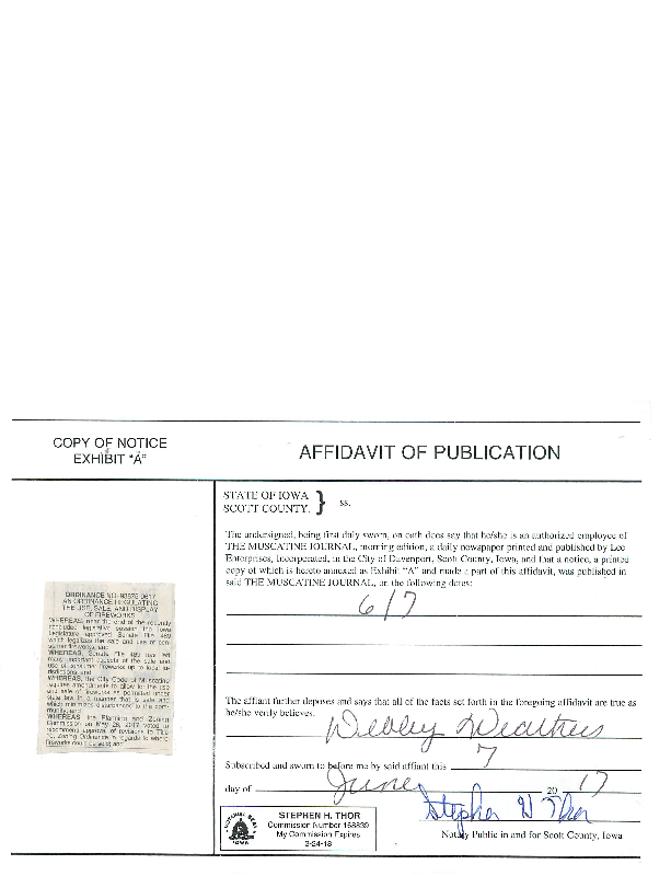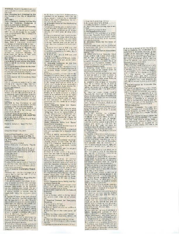 Version 1 Ord. Adopted Regulating the Use, Sale, and Display of Fireworks