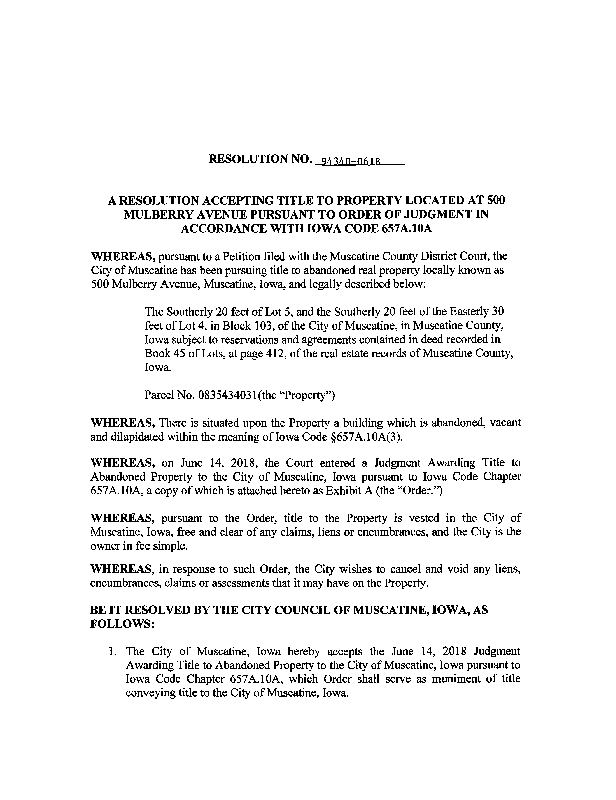 Version 1 500 Mulberry - Acceptance of Title to Abandoned Property.pdf