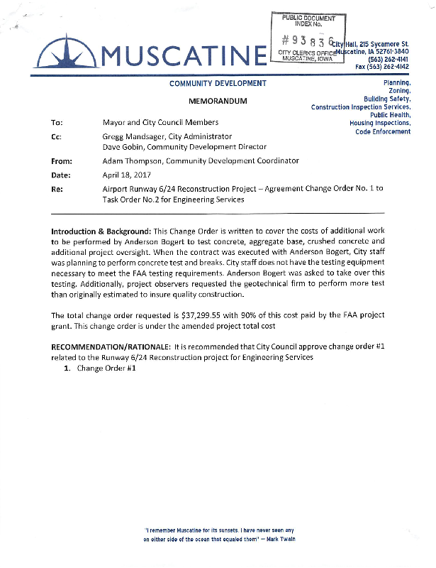 Airport runway Replacement Project - Agreement to Change Order #1.pdf