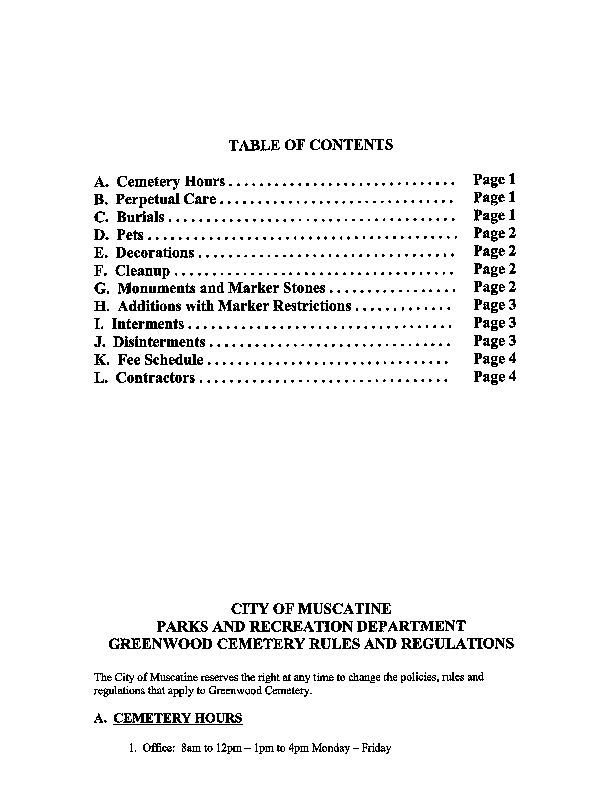 Version 1 RESOLUTION APPROVING RULES AND REGULATIONS FOR GREENWOOD CEMETERY