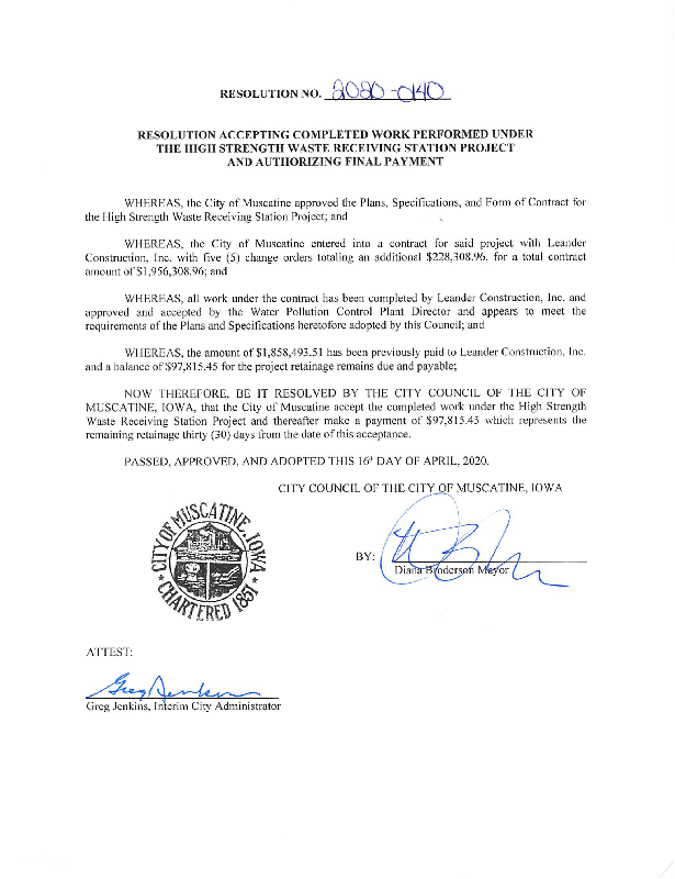 Version 1 High Strength Waste Receiving Station - Completion of Work and Final Payment.pdf