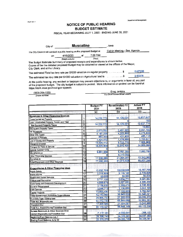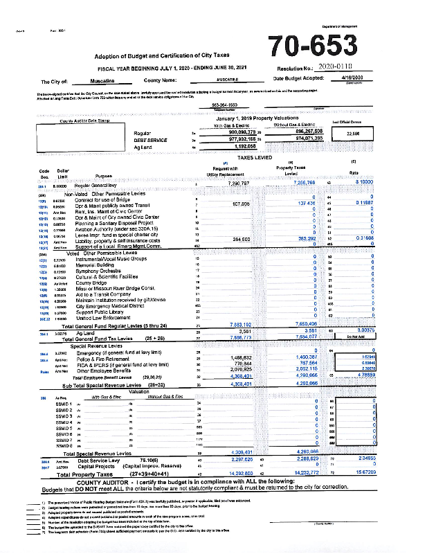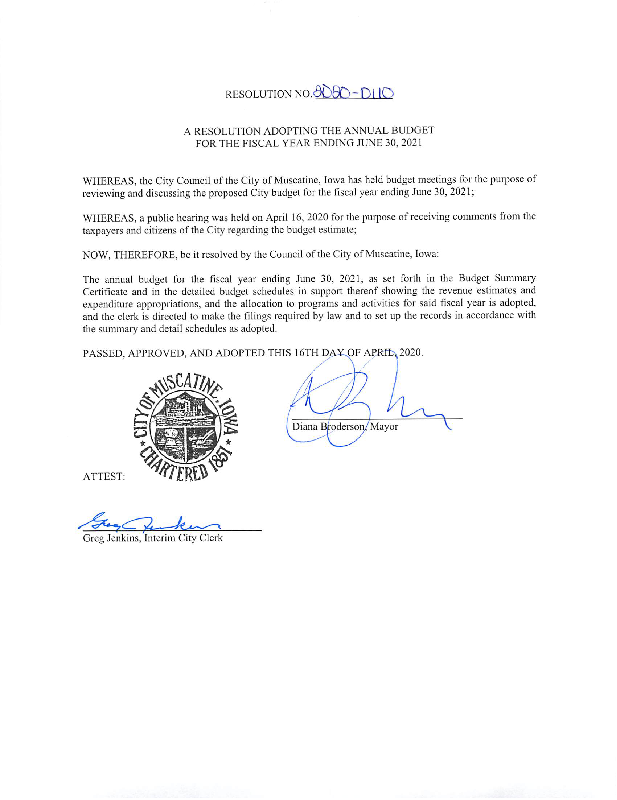 Version 1 RESOLUTION ADOPTING THE ANNUAL BUDGET FOR FY ENDING JUNE 30, 2021