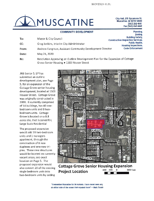 Version 1 RESOLUTION APPROVING THE OUTLINE DEVELOPMENT PLAN FOR AN EXPANSION OF COTTAGE GROVE SENIOR HOUSING DEVELOPMENT