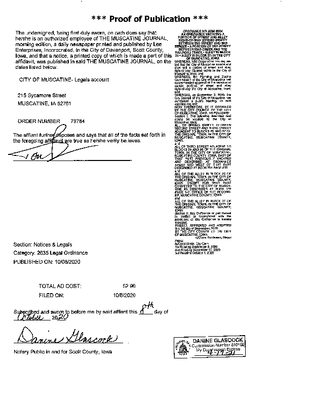 Version 1 Ordinance Vacating a Portion of Street and Alley Right of Way for Conveyance to HNI