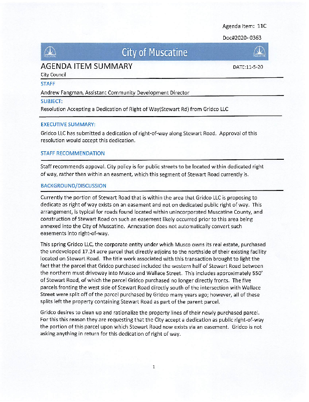 Version 1 RESOLUTION ACCEPTING THE DEDICATION OF ROW FROM GRIDCO