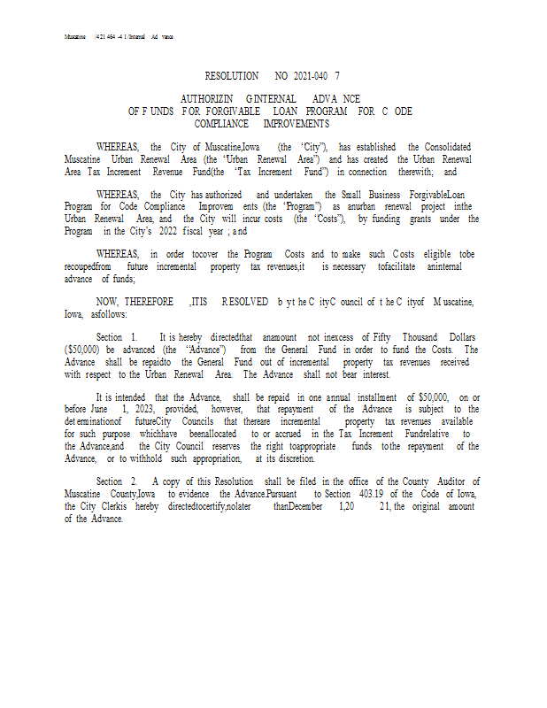 Version 1 Res Approving 11E4 TIF Internal Advance Small Business Code Compliance FY 22 for FY 23 Budget.Res 11-4-21.pdf.pdf