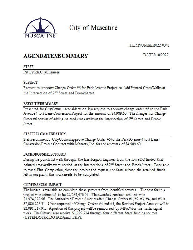 Version 1 2022-0348 Request to Approve Change Order #6 for Park Avenue Project.pdf