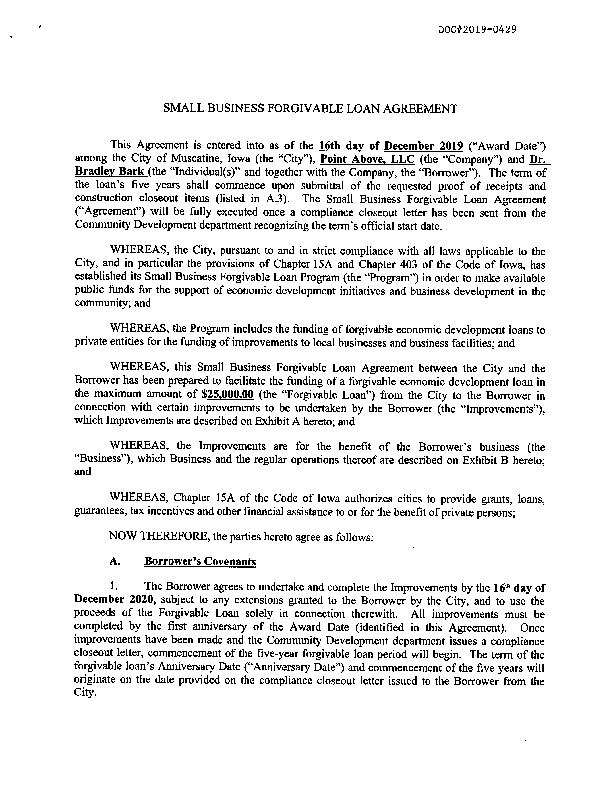 Version 1 2019-0429 Small Business Loan Agreement - A Point Above.pdf