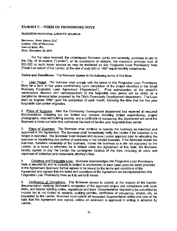 Version 1 2019-0429 Small Business Loan Agreement - A Point Above.pdf