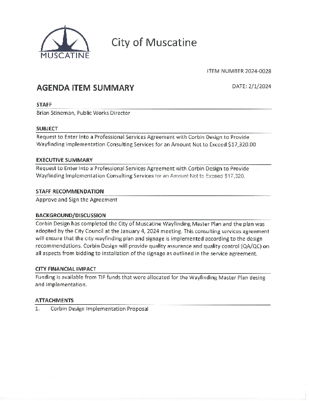 Version 1 2024-0028 Corbin Design_Muscatine Wayfinding Implementation Proposal_Signed 2.20.24.pdf
