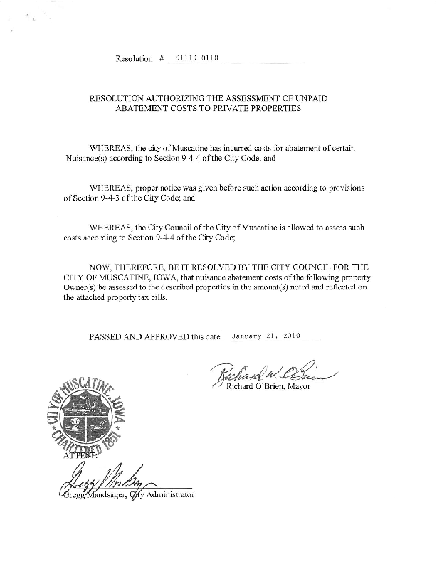 Version 1 91119-0110 Resolution Authorizing the Assessments to Private Properties 01-2010.pdf
