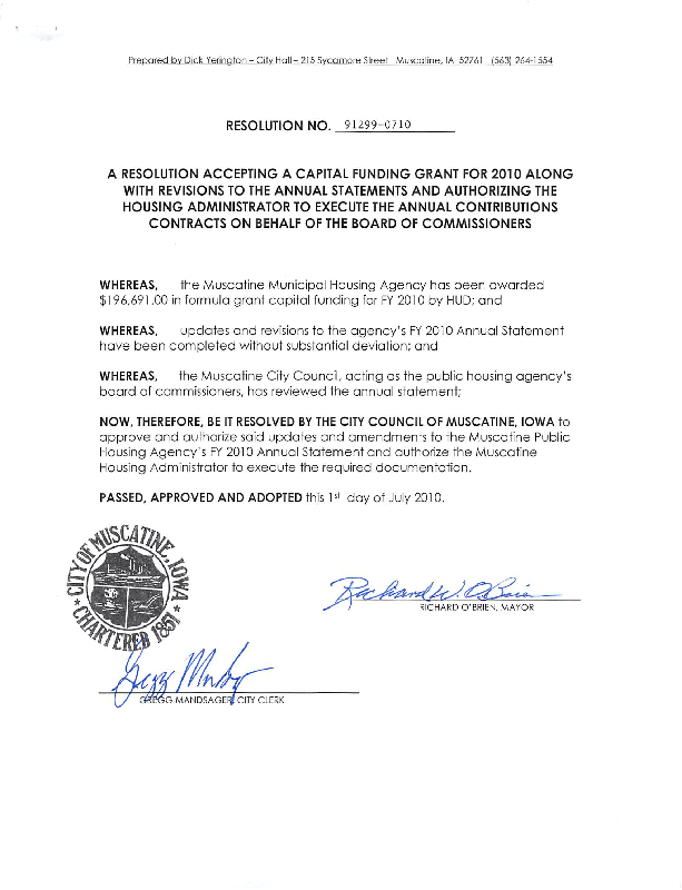 Version 1 21299-0710 Resolution Accepting a Capital Funding Grant for 2010 Along with Revisions to the Annual Statements.pdf