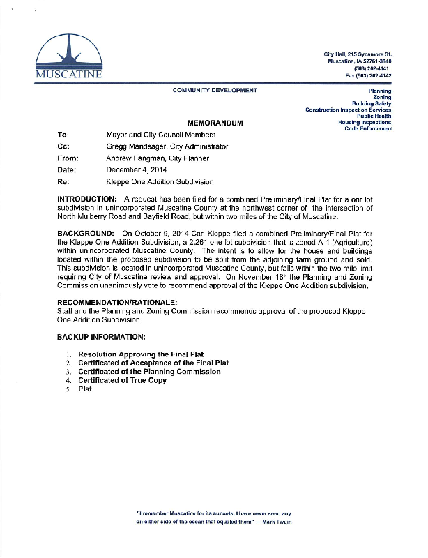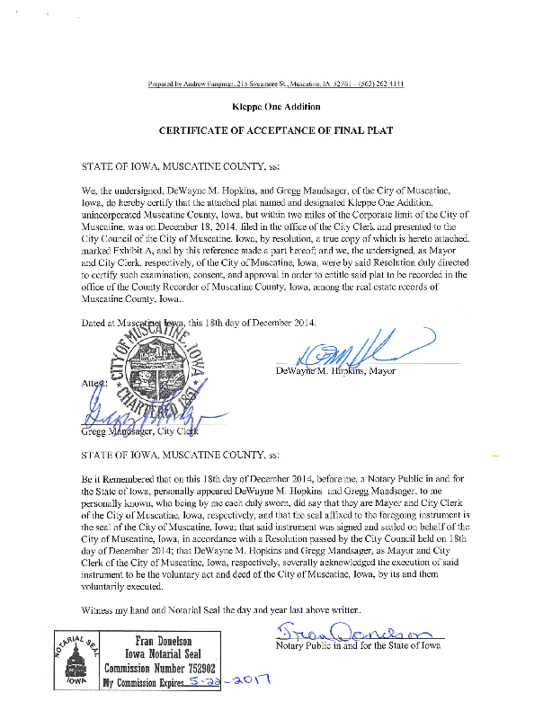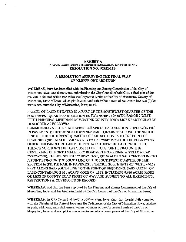 Version 1 29222-1214 Resolution Approving the Final Plat of Kleppe One Addition.pdf