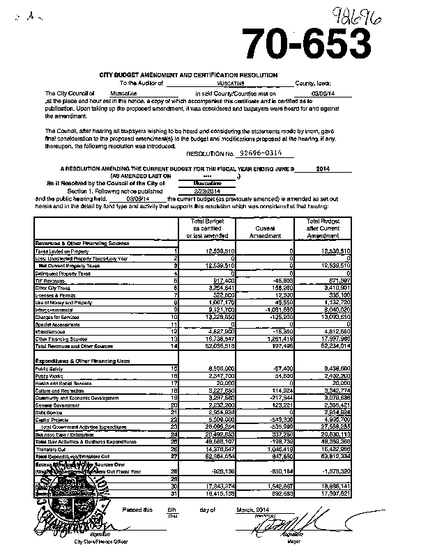 Version 1 92696-0314 Resolution Approving Amendment and Certification of Budget for FY Ending June 30, 2014.pdf