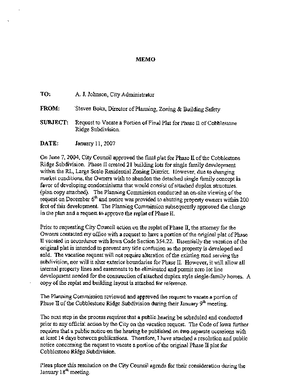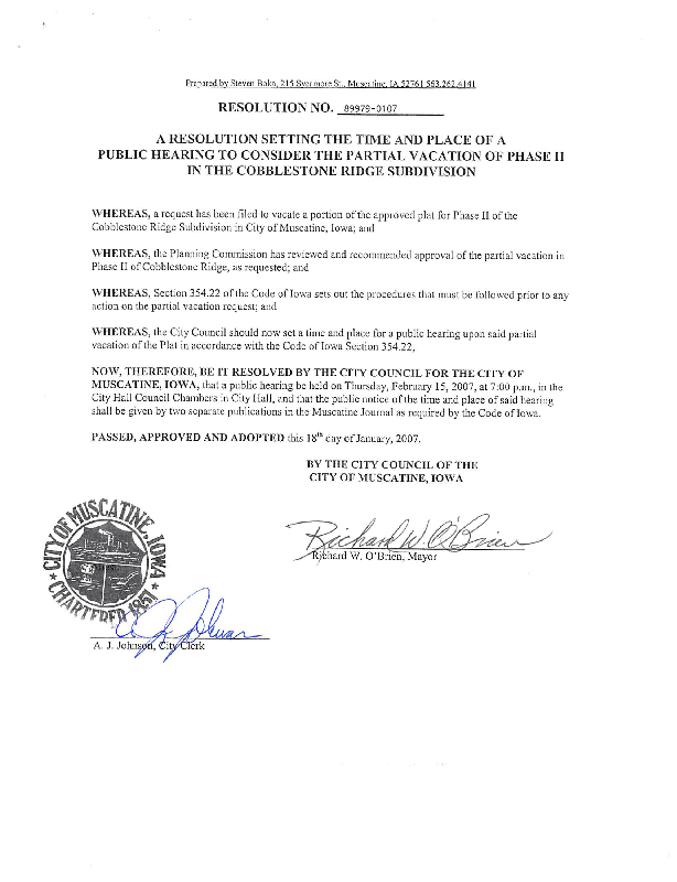 Version 1 89979-0107 Resolution Setting a Public hearing to Consider the Partial Vacation of Phase II in the Cobblestone Ridge Subdivision.pdf