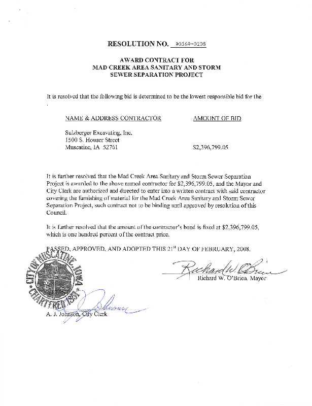Version 1 90369-0208 Resolution Awarding Contract for Mad Creek Area Sanitary and Sewer Separation Project.pdf