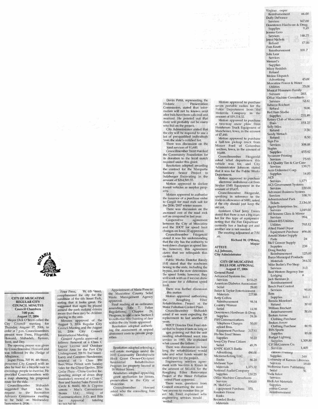 Version 1 Affdvt. of Publication - 8/17/06 Bills/Minutes
