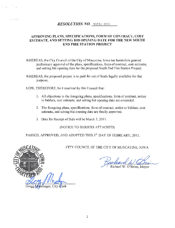Version 1 91531-0211 Resolution Approving Plans and Specifications for the South End Fire Station #2 -.pdf