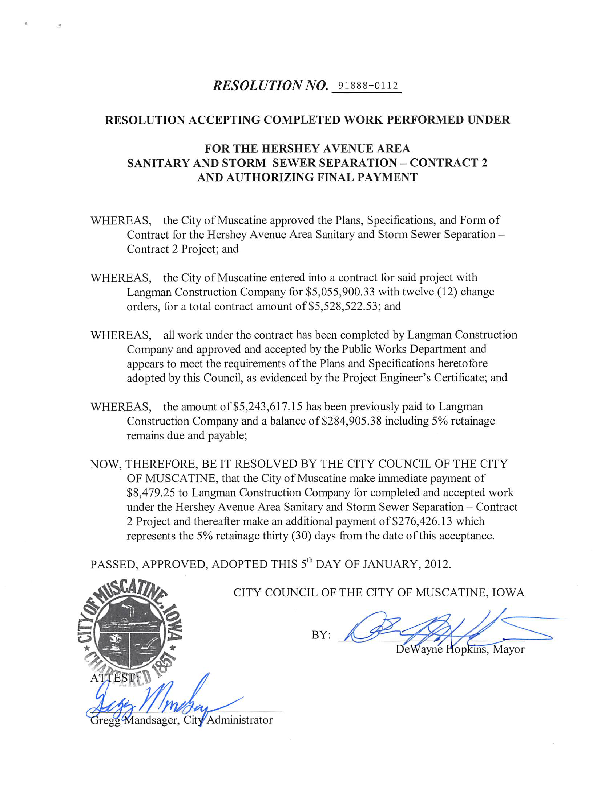 Version 1 91888-0112 Resolution Accepting Completed Work for the Hershey Avenue Area Sanitary and Storm Sewer Separation -.pdf