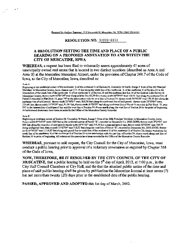 Version 1 91920-0312 Resolution Setting Publc Hearing on the Annexation to the City of Muscatine - Airport Area.pdf