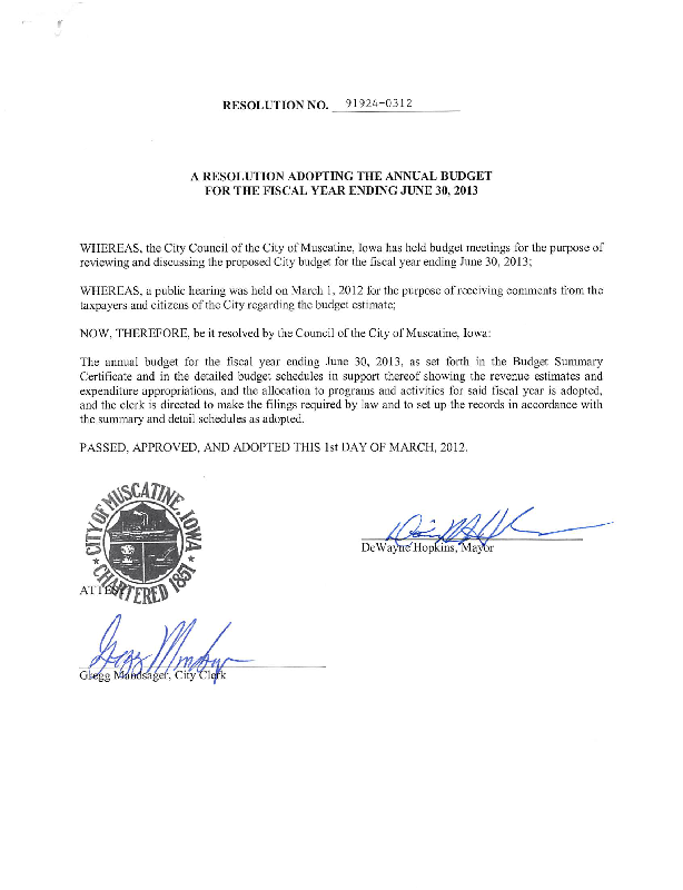 Version 1 91924-0312 Resolution Adopting the Annual Budget for FY ending June 30, 2013.pdf