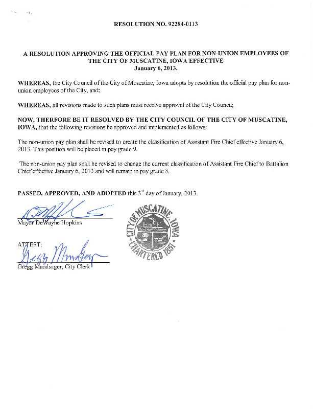 Version 1 92284-0113 Resolution approving the Non-Union Employee Pay Plan Effective January 6, 2013.pdf