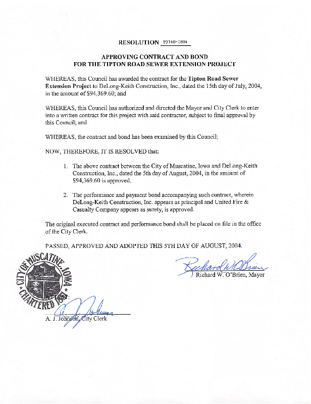 Version 1 Resolution Approving Contract and Bond for the Tipton Road Sewer Extension Project.pdf