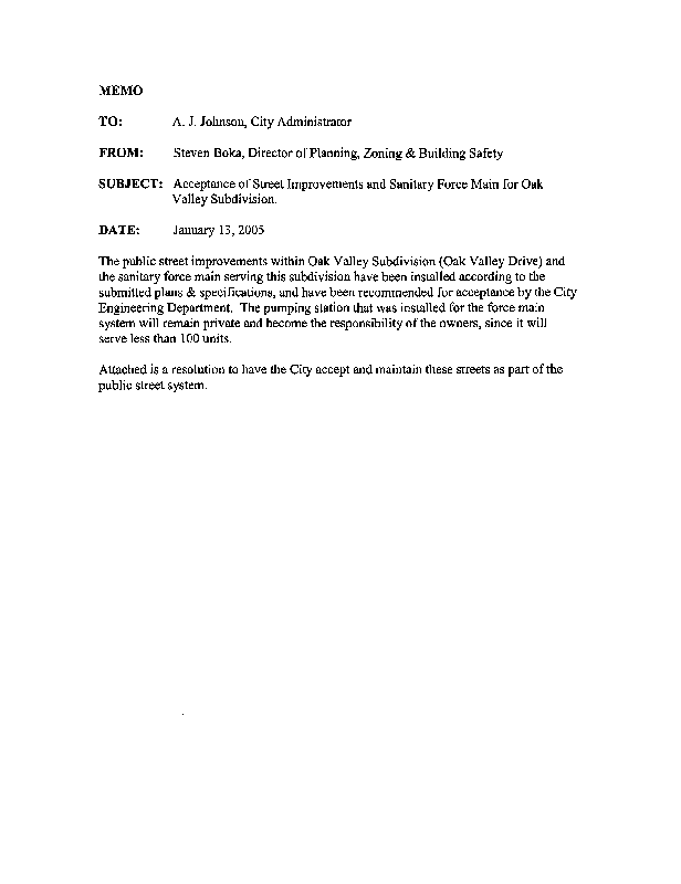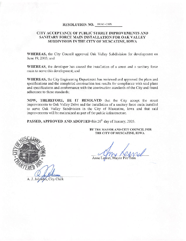 Version 1 Resolution Accepting Public Street Improvements and Sanitary Force Main Installation for Oak Valley Subdivision.pdf