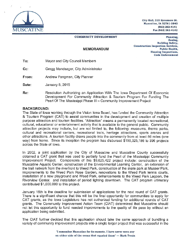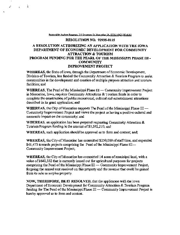 Version 1 92935-0115 Resolution Authorizing an Application with the Iowa Department of Economic Development for Attraction and Tourism Program Funding for Pearl of the Mississippi Phase 3.pdf