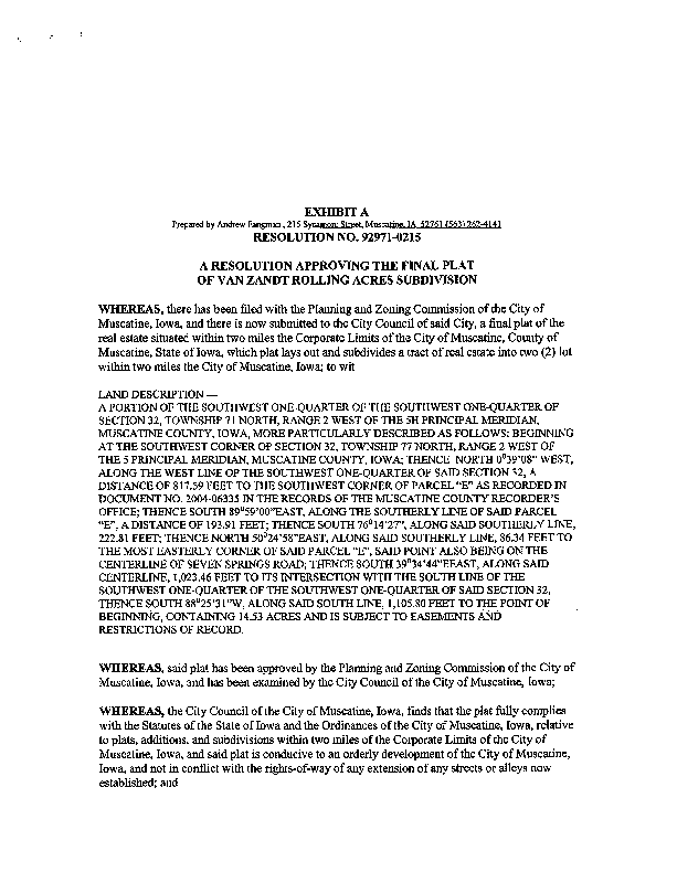 Version 1 92971-0215 Resolution Approving the Final Plat of Van Zandt Rolling Acres Subdivision.pdf