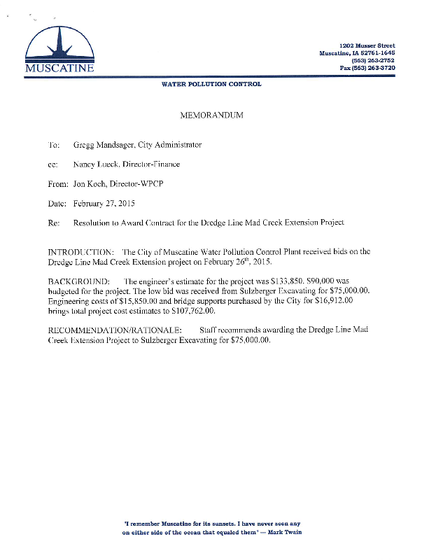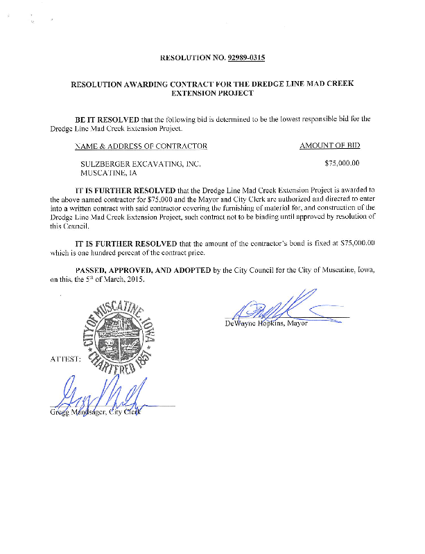 Version 1 92989-0315 Resolution Awarding Contract for the Dredge Line Mad Creek Extension Project - Sulzberger Excavating Inc.pdf