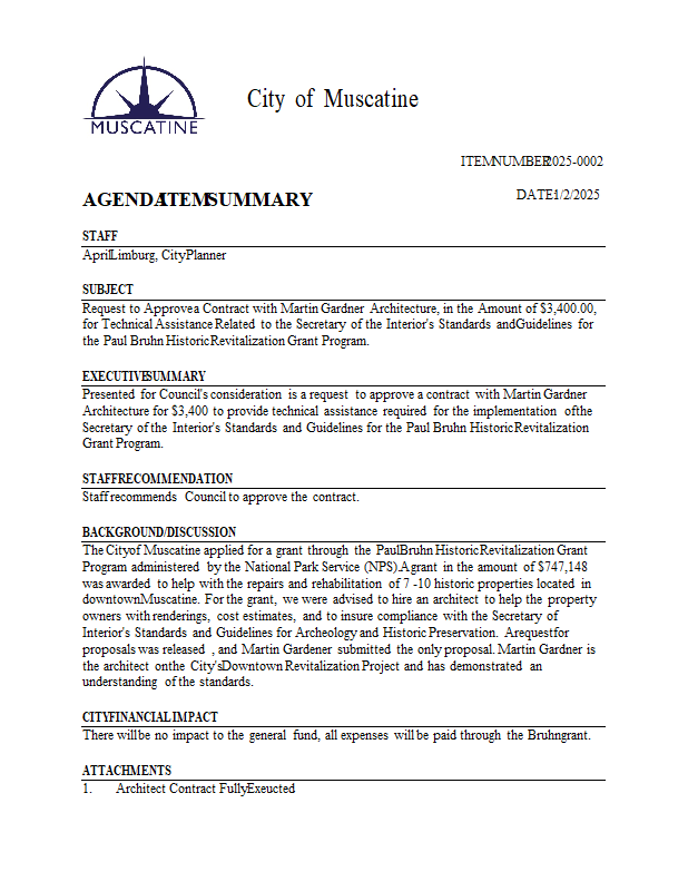 Version 1 2025-0002 Request to Approve a Contract with Martin Gardner Architecture, in the Amount of $3,400.00, for Technical Assistance Related to the Secretary of the Interior's Standards and Guidelines.pdf