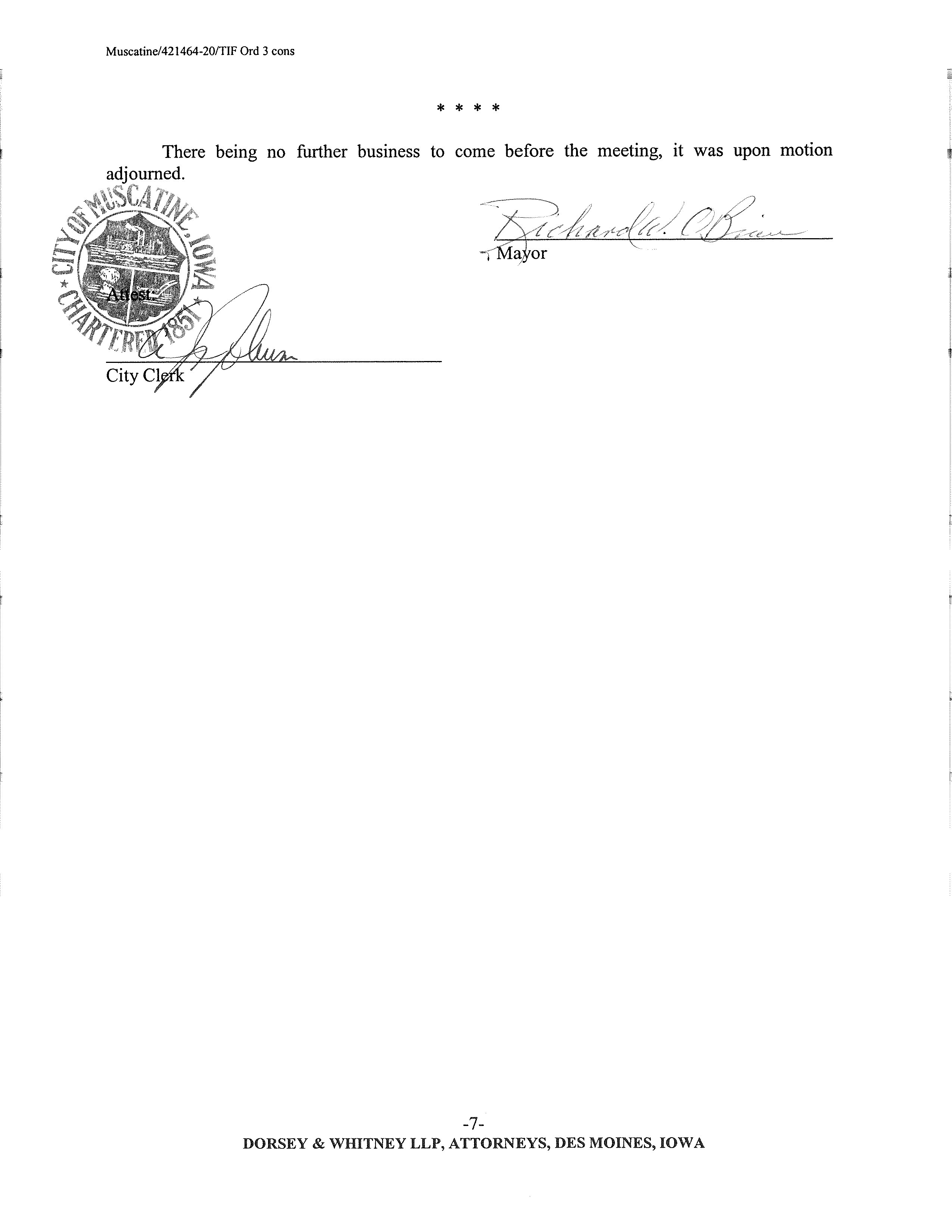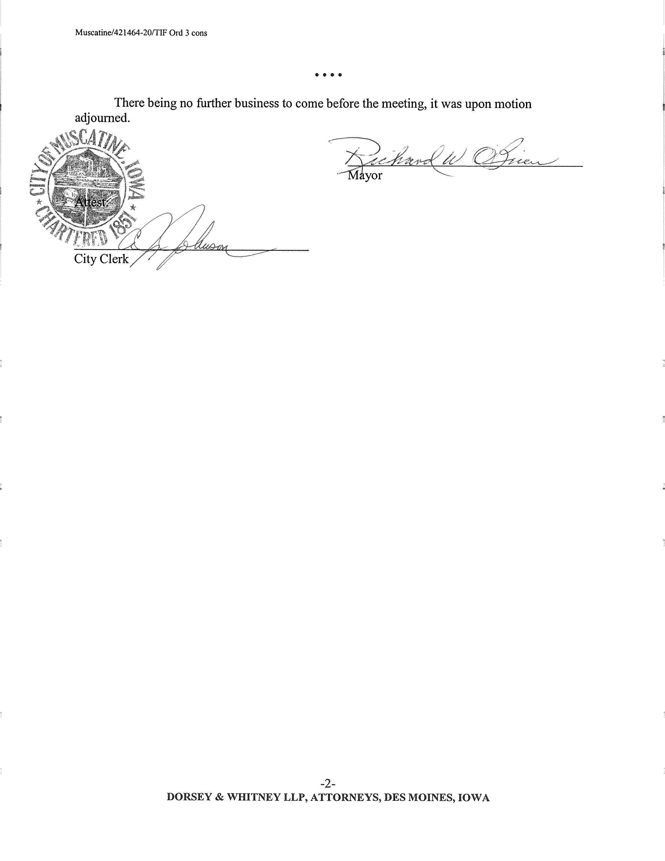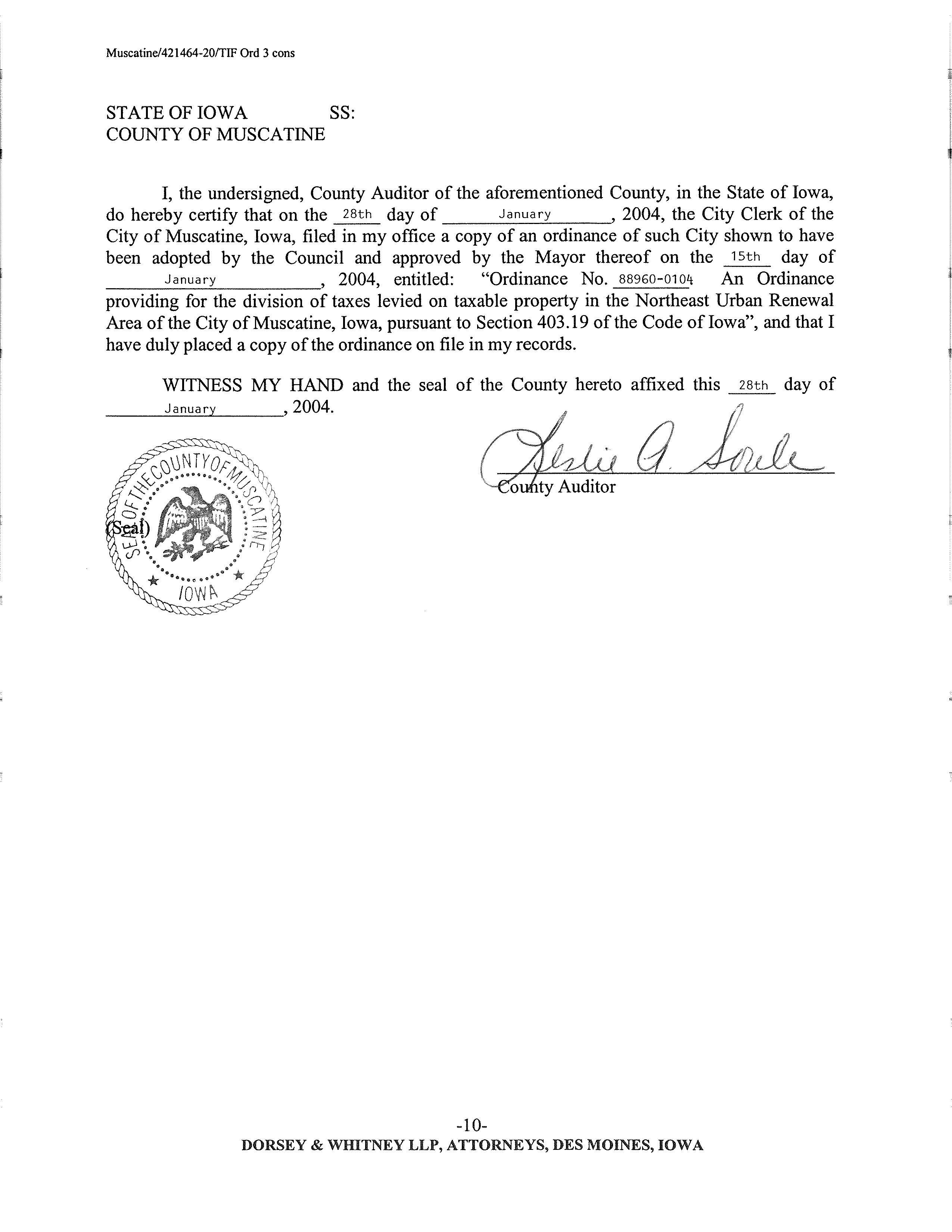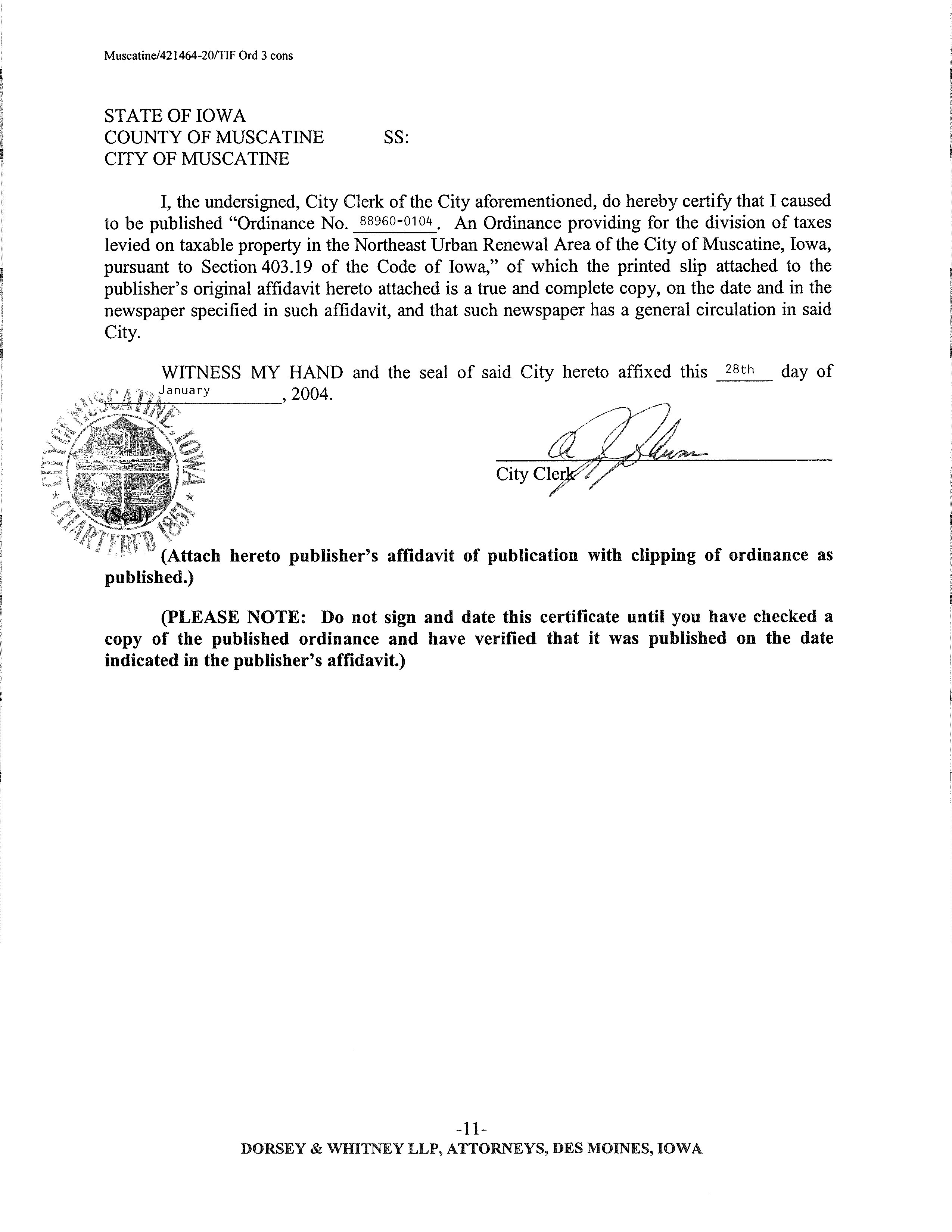 Version 1 Ordinance Approved on the Final Reading Establishing a TIF District in the Northeast Urban Renewal Area of the City of Muscatine