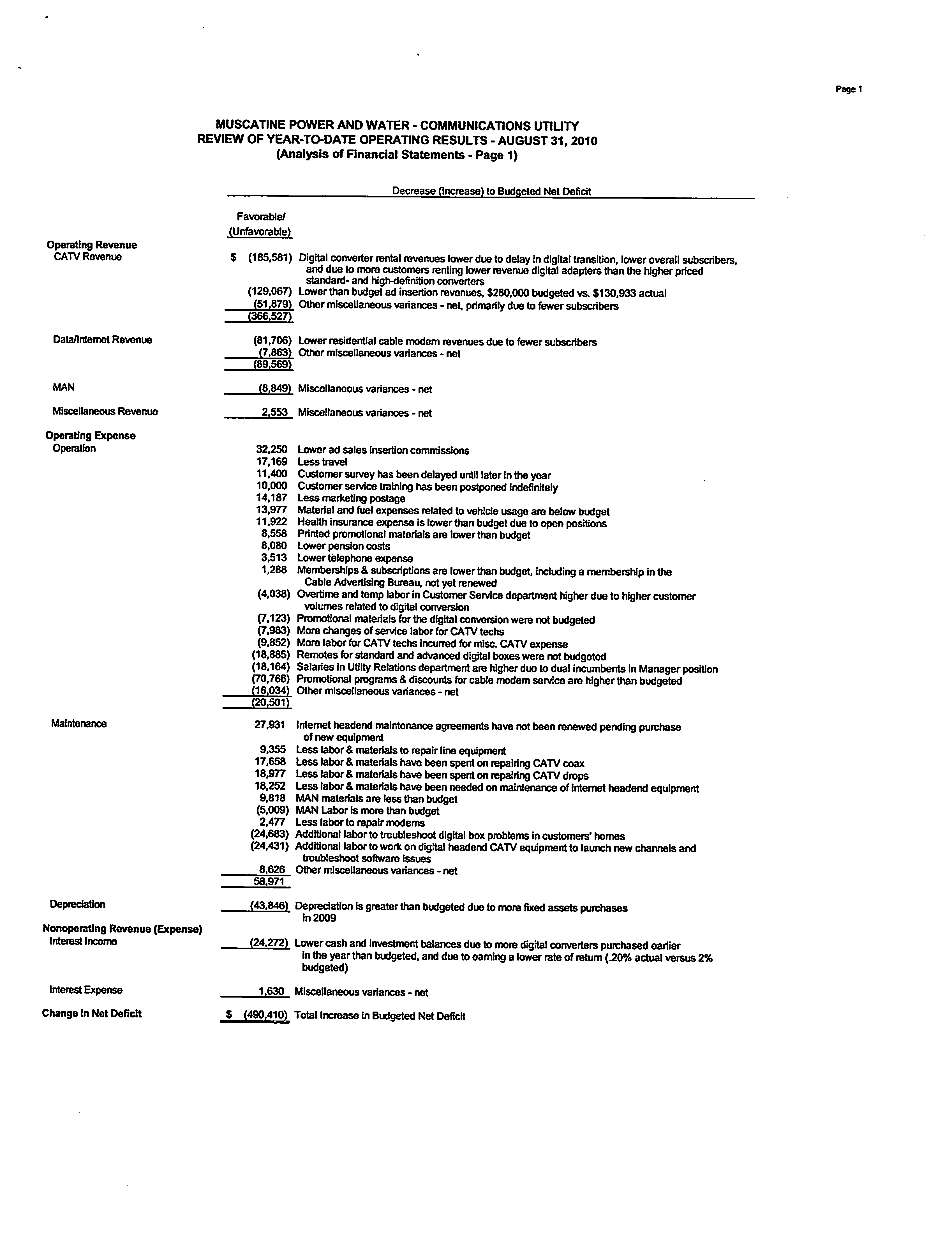 Version 1 August 2010 COMMUNICATIONS UTILITY