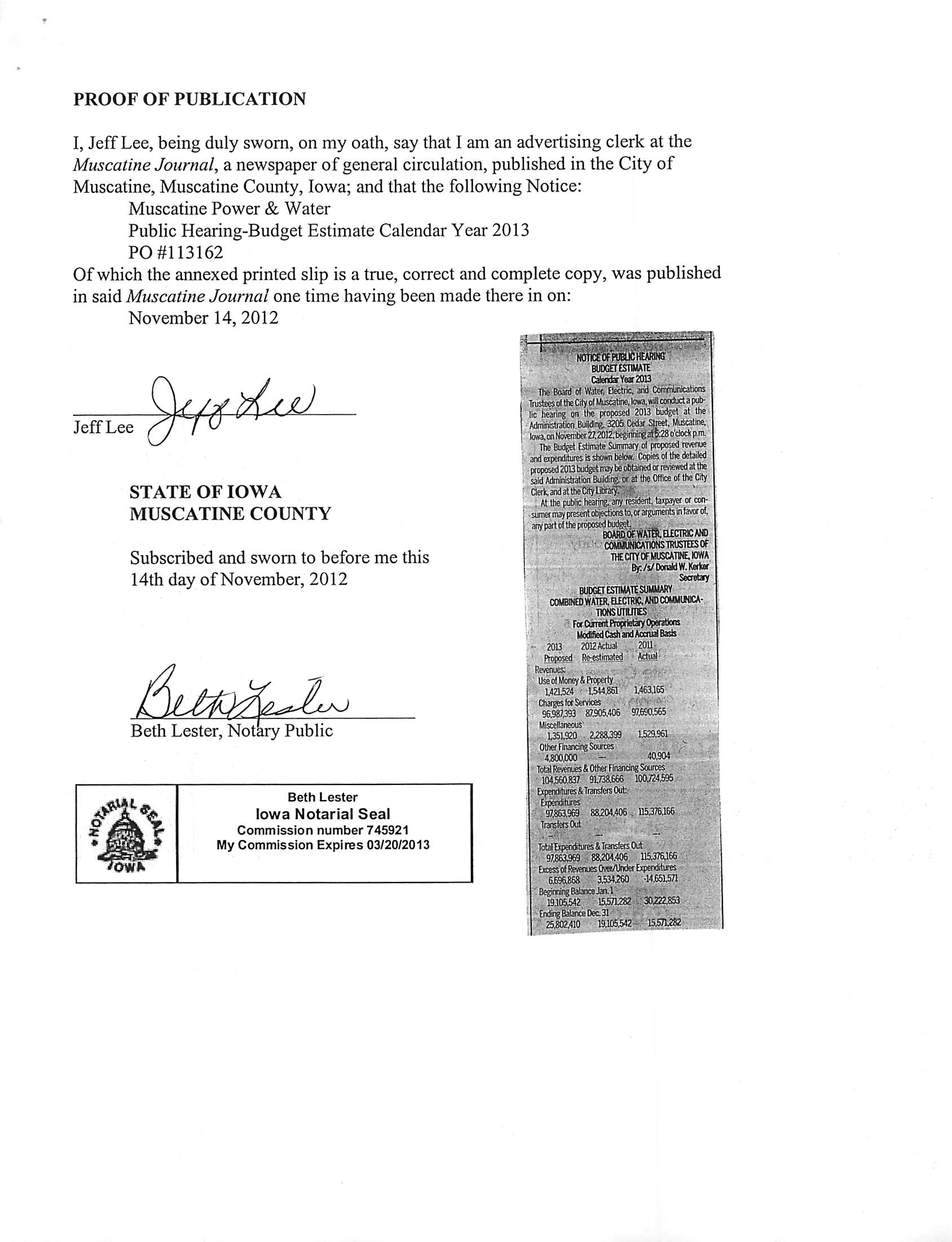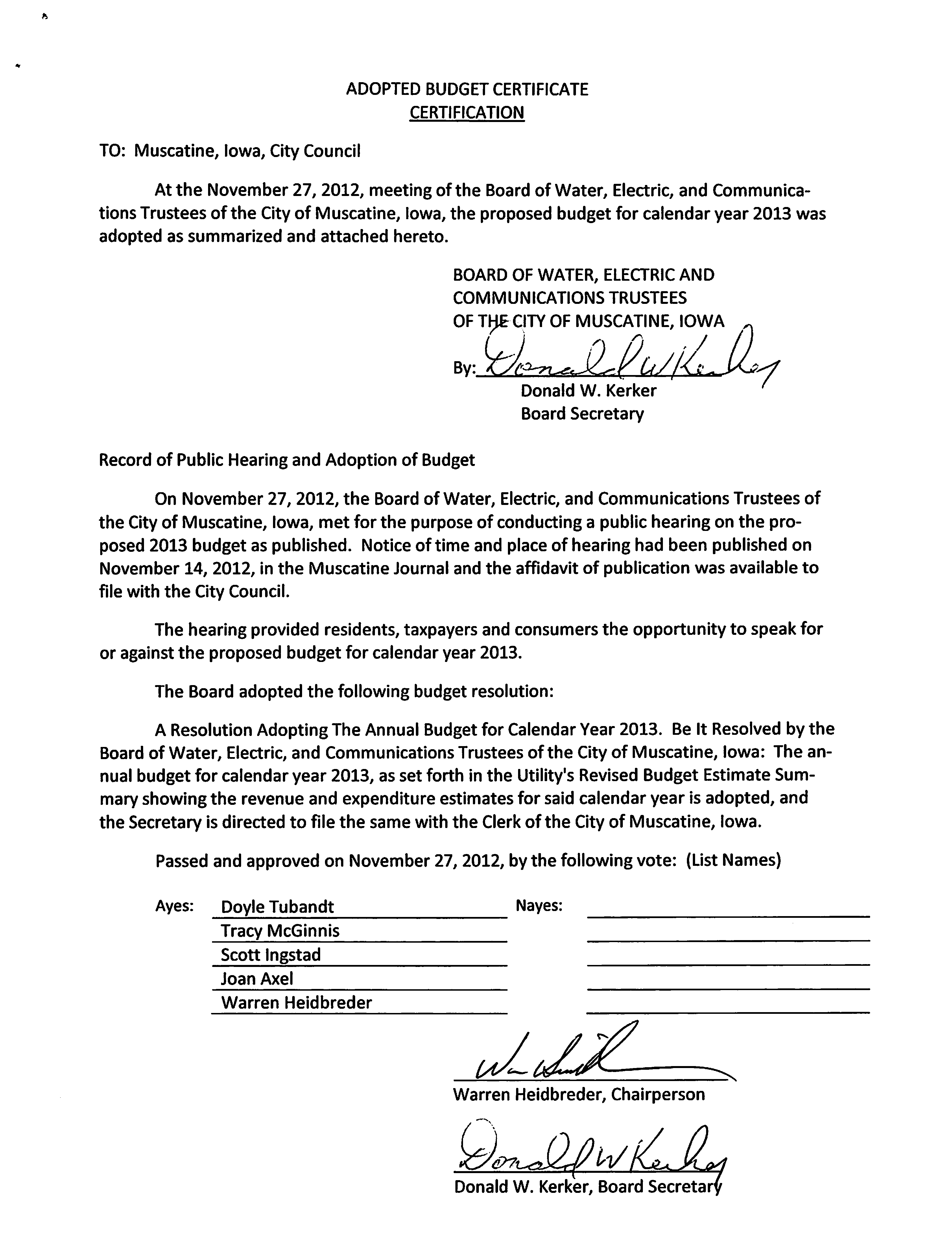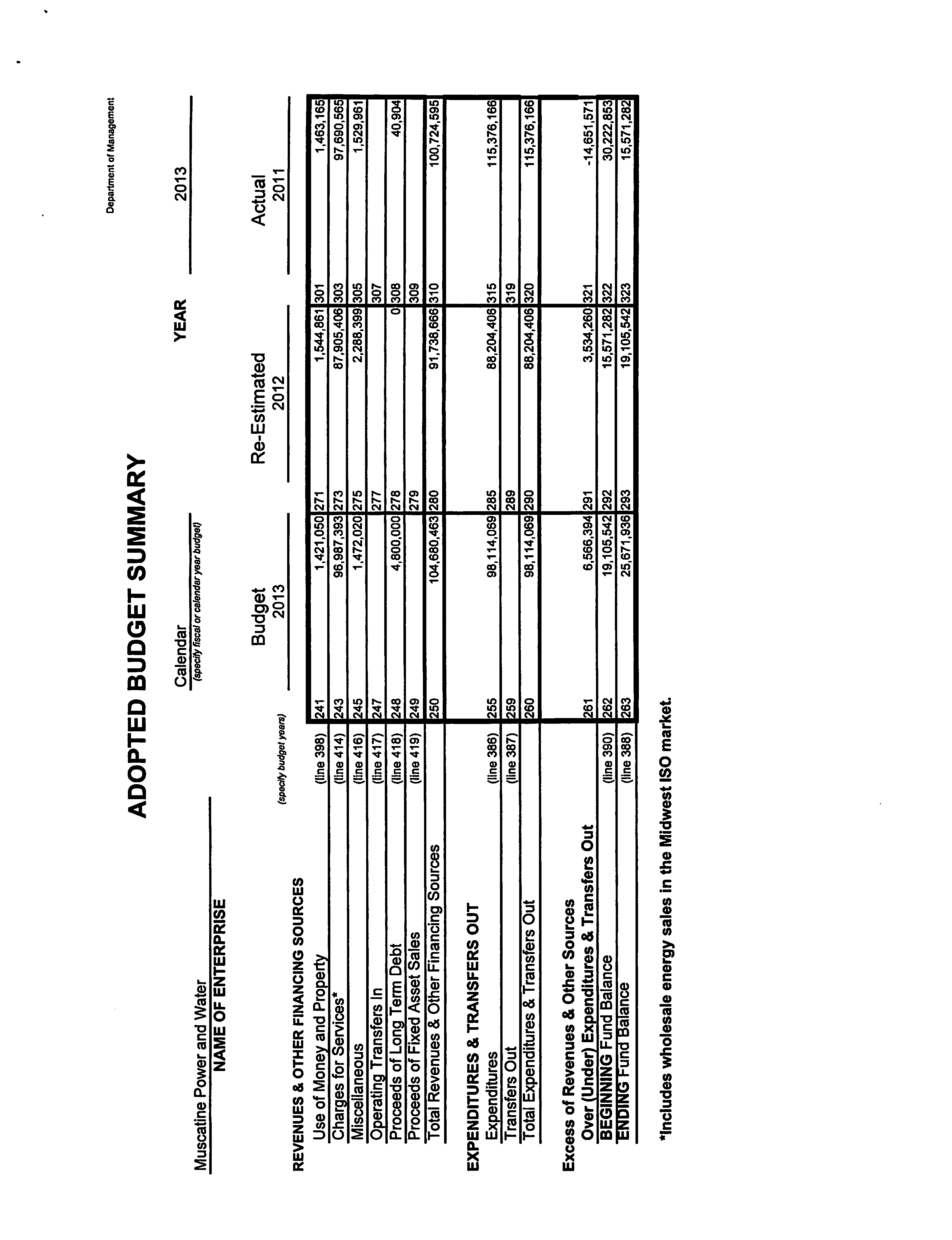 Version 1 ADOPTED BUDGET CERTIFICATE - 2013 CALENDAR YEAR