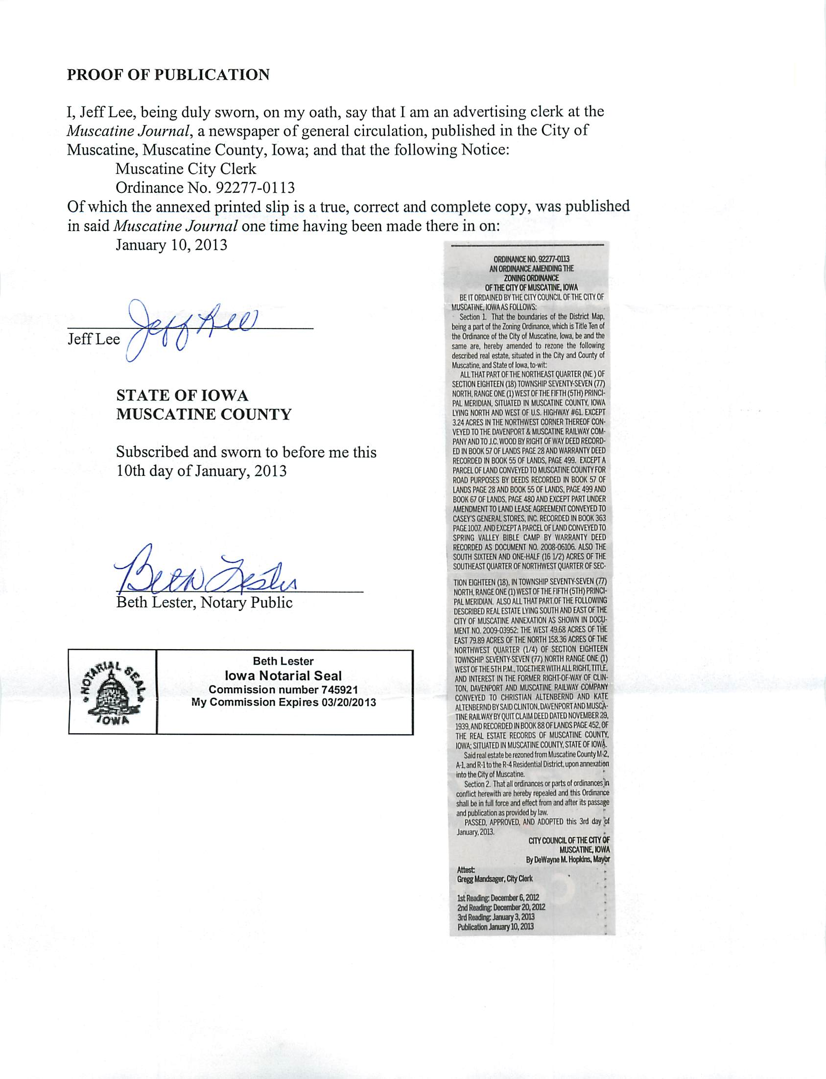 Version 1 Ord. Adopted Amending the Zoning Ordinance - Ripley's Mobile Home Park