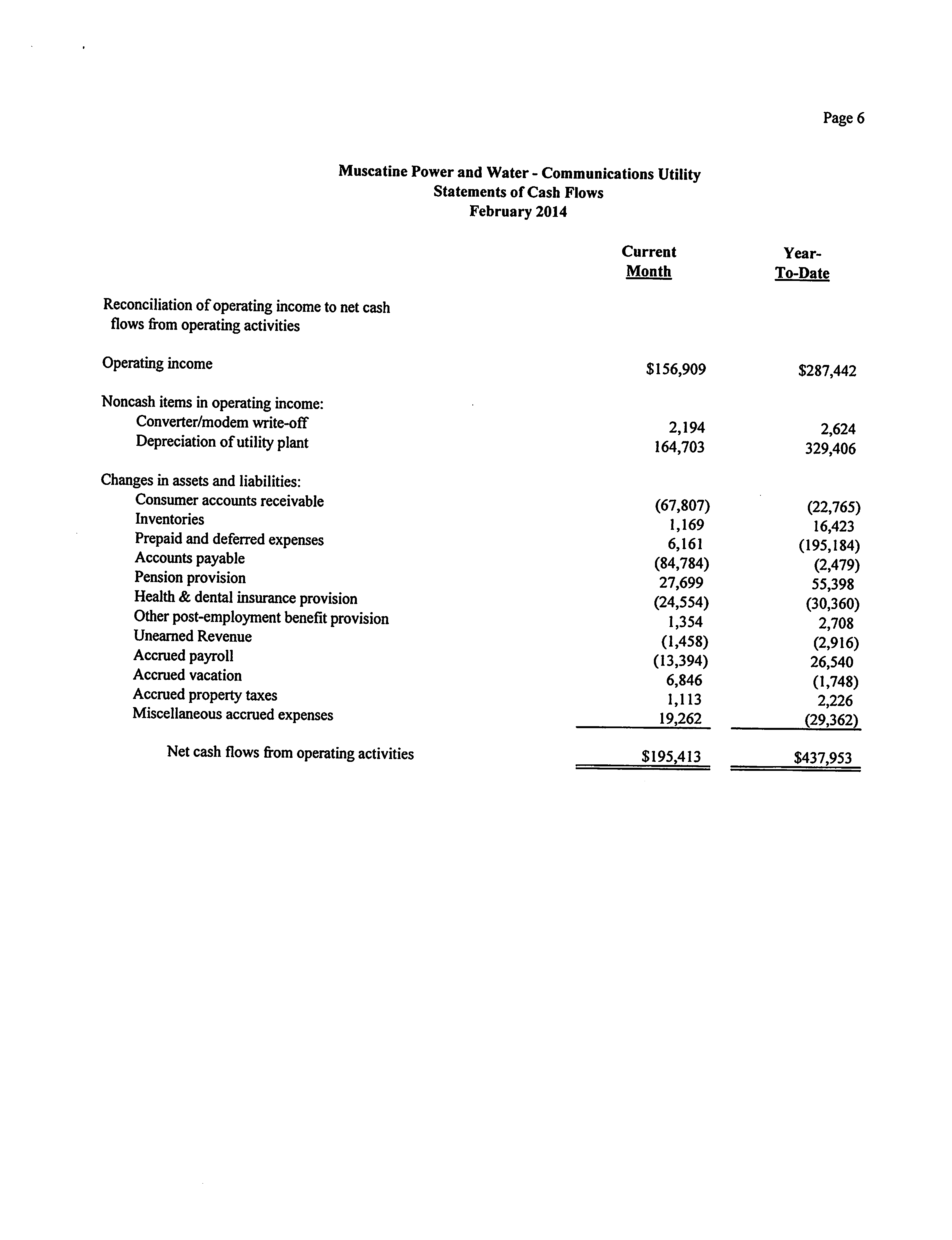 Version 1 02-14 Communications Utility Statement of Revenues