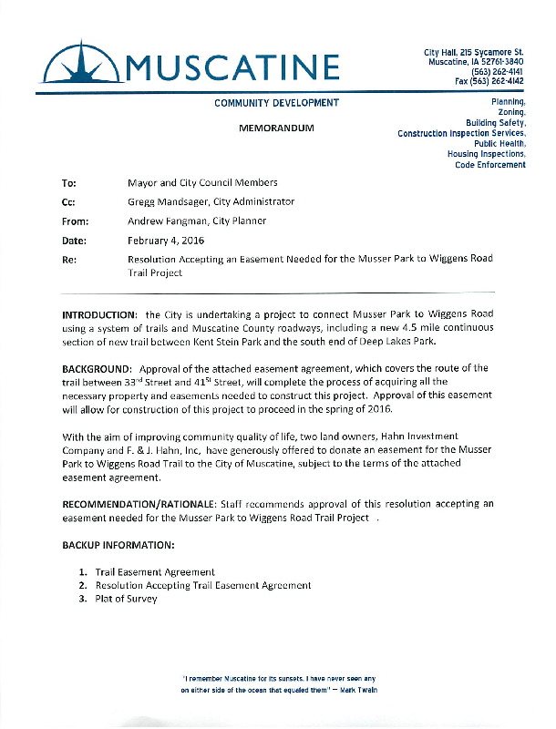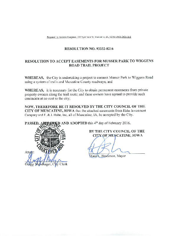 Version 1 Res. Adopted Accepting Easements for the Musser Park to Wiggens Road Trail Project (This resolution was resubmitted for approval at the 02/18/2016 City Council meeting)